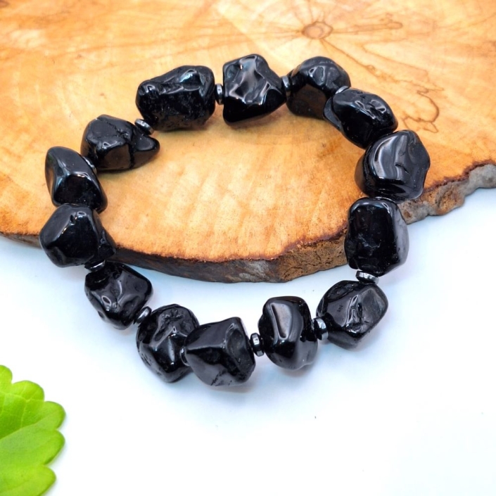 Elasticated bracelet with natural Black Tourmaline nugget shaped 12,, gemstone beads