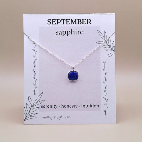 September Birthstone : Sapphire – Sterling Silver Pendant and Chain