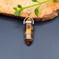 Natural Tiger Eye point pendant with silver coloured rhodium plated brass metal clasp & Stainless Steel Chain.