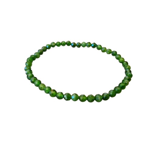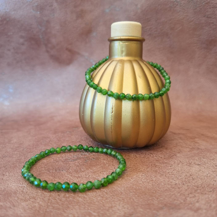 Diopside is a green mineral that supports emotional healing and enhance compassion, often used in crystal healing practices.