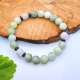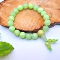 Natural light green jade gemstone elasticated bracelet with guru beads