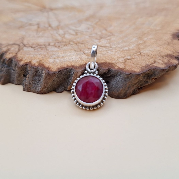 Sterling silver Pendant with a round faceted Ruby precious gemstone