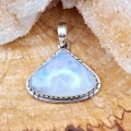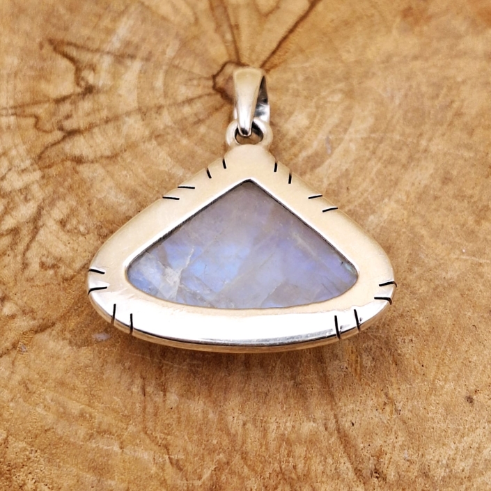 Sterling silver pendant with a triangular shaped, polished rainbow Moonstone gemstone.