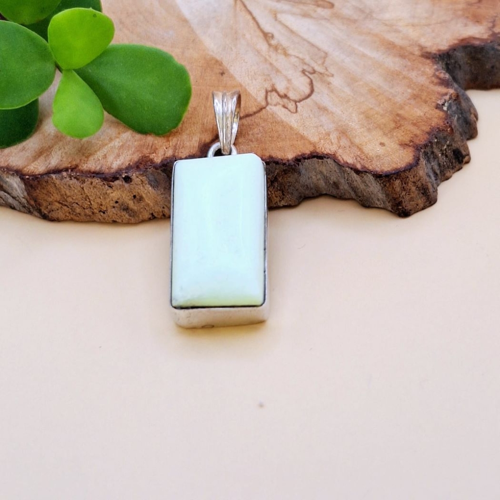 Rectangular lemon chrysoprase cabochon set in sterling silver.