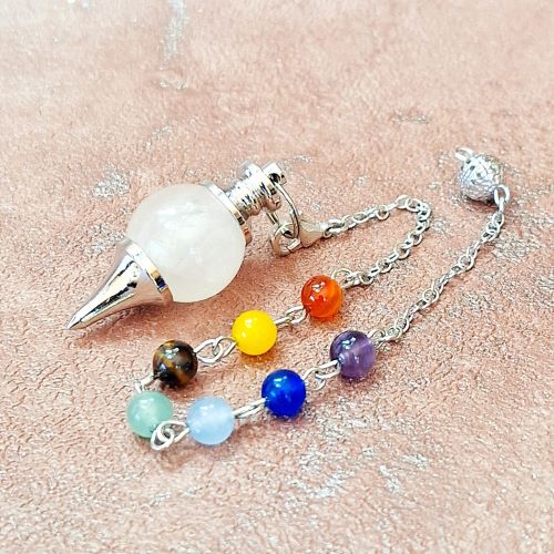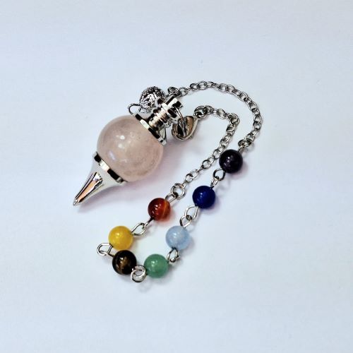 Natural Rose Quartz pendulum with chakra coloured gemstone beads