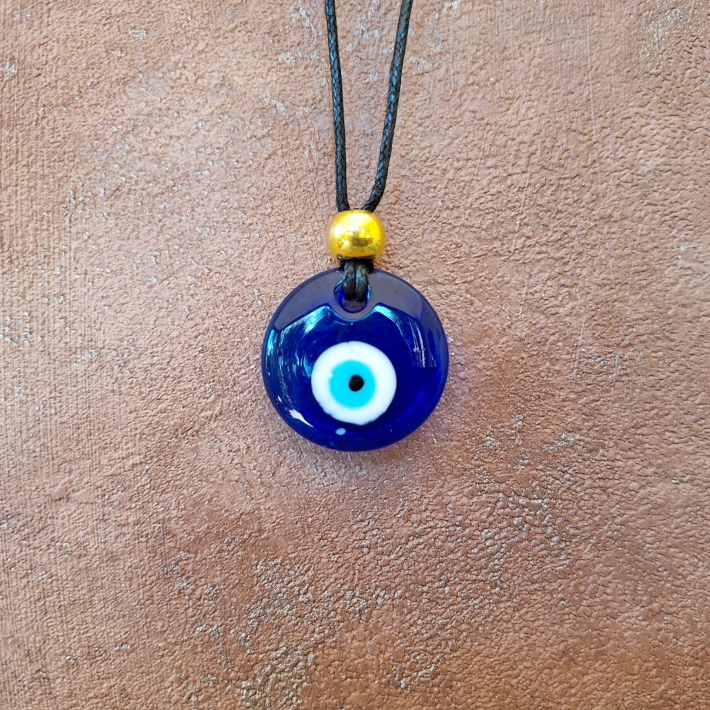 Turkish Eye also known as the Evil Eye round lamp-work glass pendant