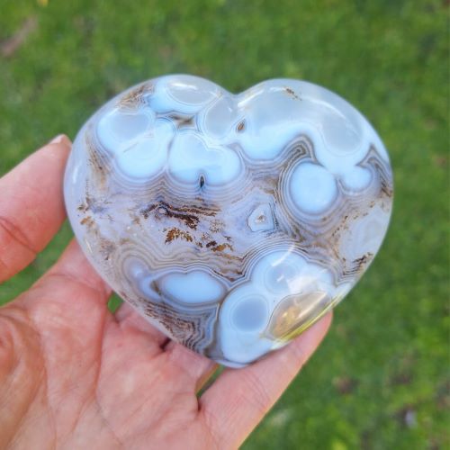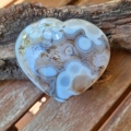 Agate – heart shaped with natural swirls in white, beige and gray.