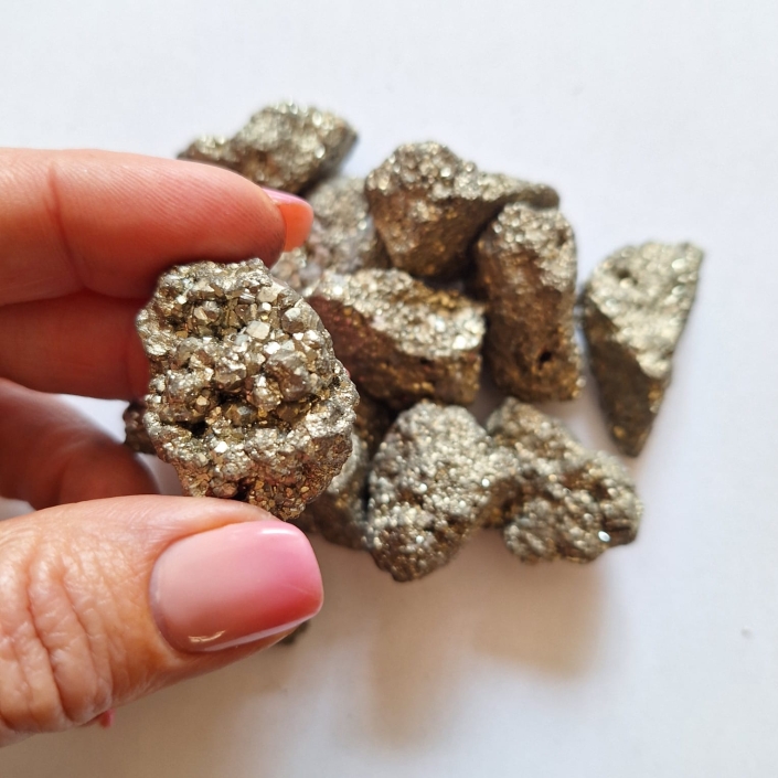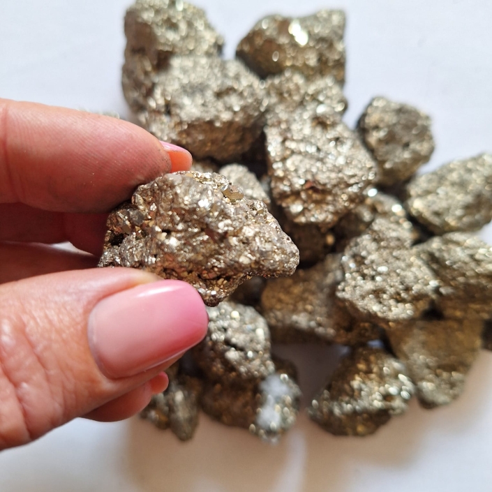 Natural unpolished pyrite clusters – also known as fools gold or abundance stone.