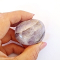 This palm stone is a combination of clear quartz, smoky quartz and amethyst