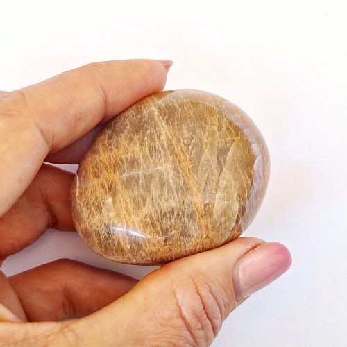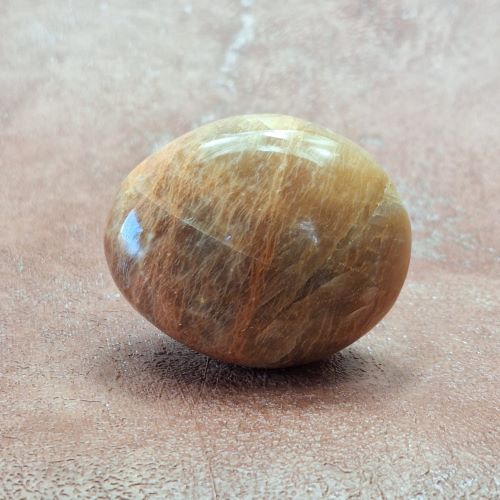Orange Satin Feldspar palm stone, shaped to fit comfortably in your hand