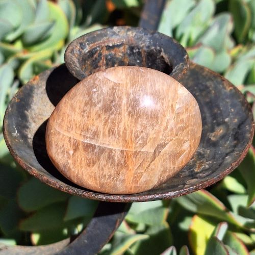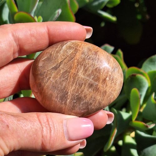Metaphysical: Orange Satin Feldspar, a warm, shimmering crystal that promotes creativity, confidence, and emotional balance.