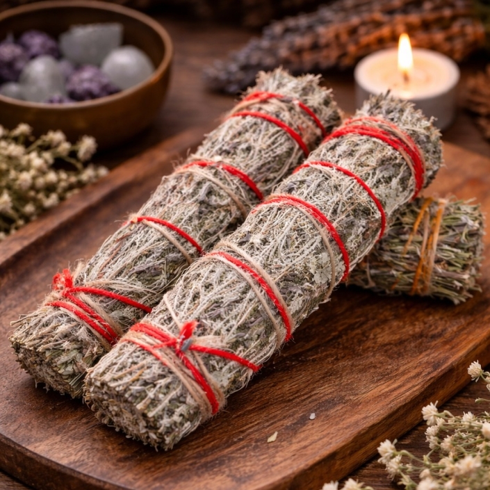 Together, these herbs create a harmonious blend ideal for cleansing spaces, meditation, ancestral work, intention setting, and full moon or new moon rituals.