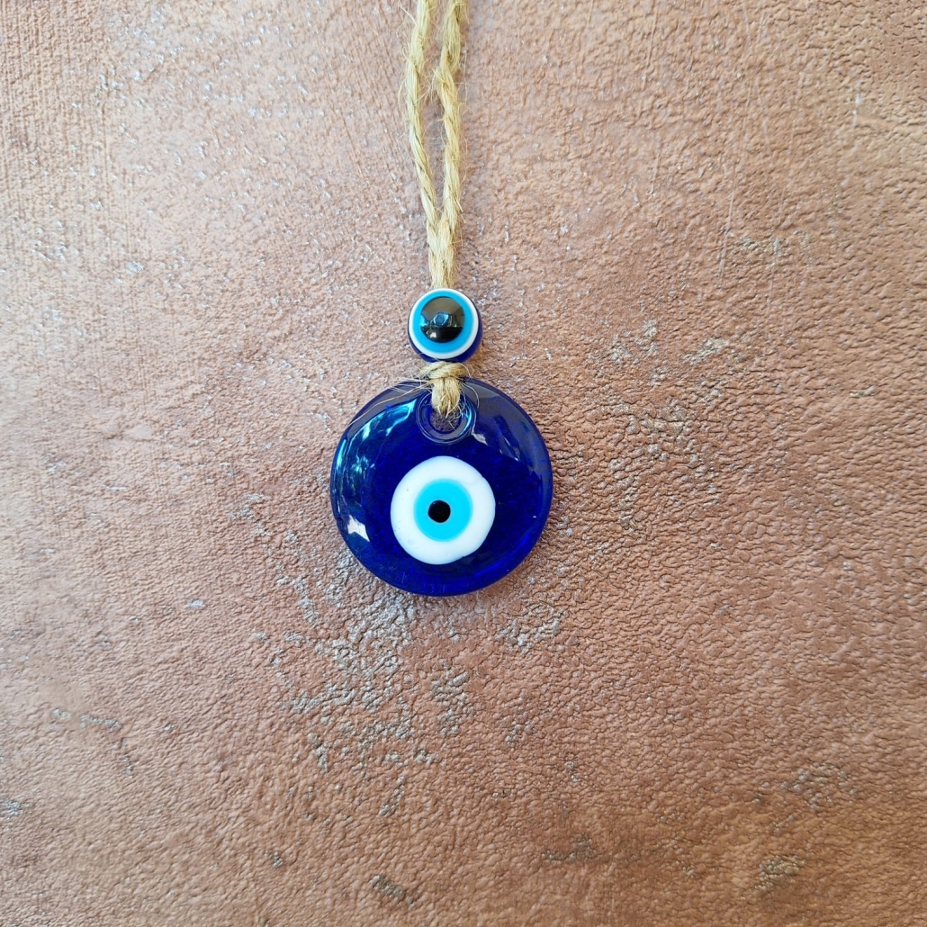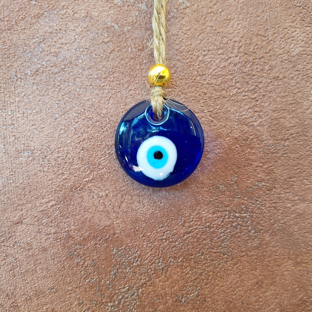 Turkish Eye also known as the Evil Eye round lamp-work glass disc