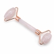 A green Jade facial roller with a yellow gold coloured finish, designed to enhance glow, smooth the skin and balance energy.