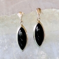 Sterling silver gemstone stud earrings with horse eye shaped cabochon shaped, black Onyx gemstones.